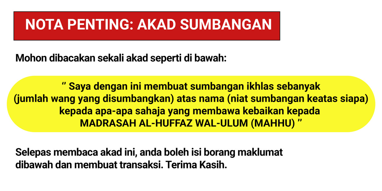 2. Sumbangan termasuk RM1.00 caj servis bagi payment gateway Toyyibpay.